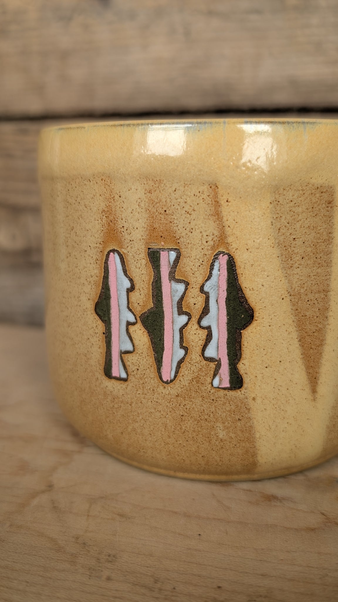 Magnifique tasse en grès tourné à la main. Truite peinte à la main.