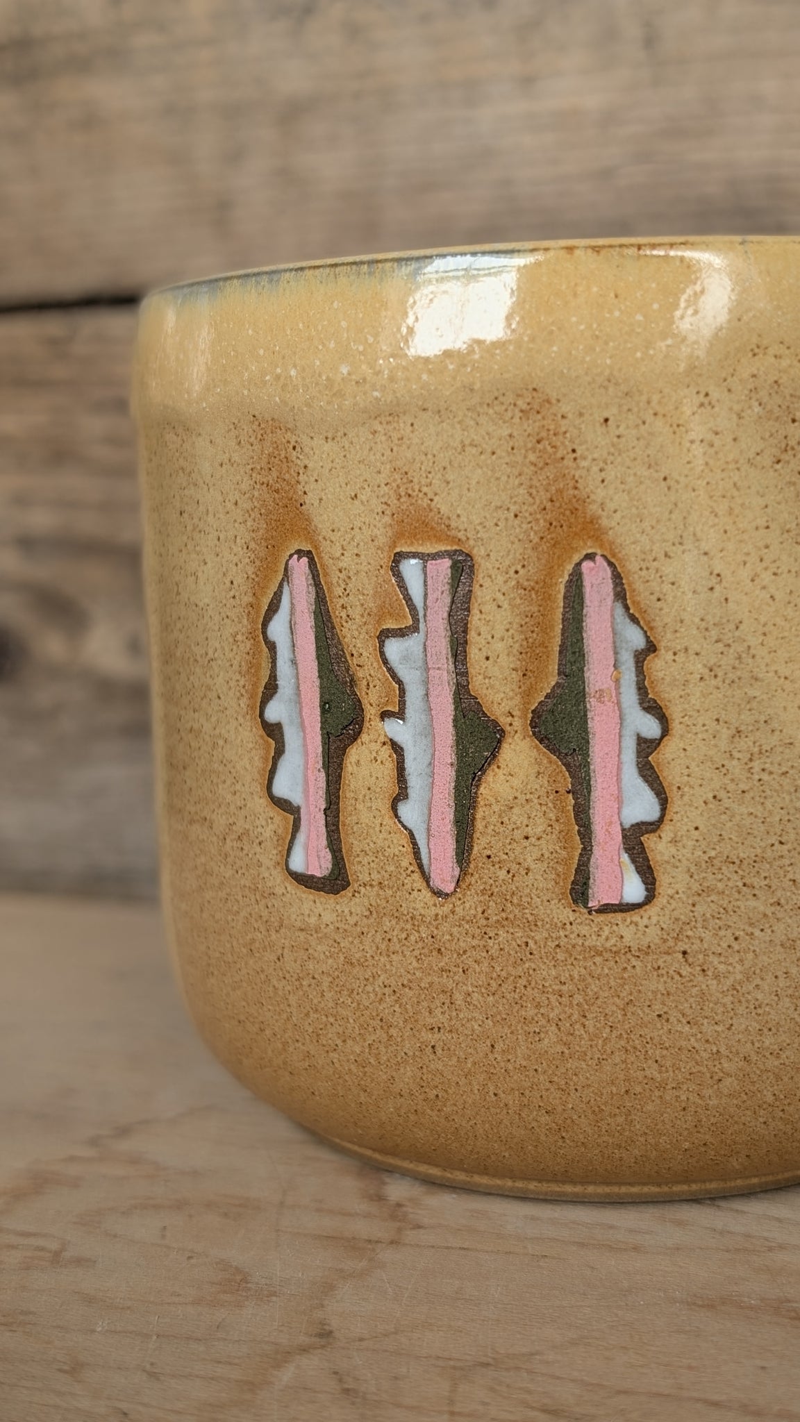 Magnifique tasse en grès tourné à la main. Truite peinte à la main.