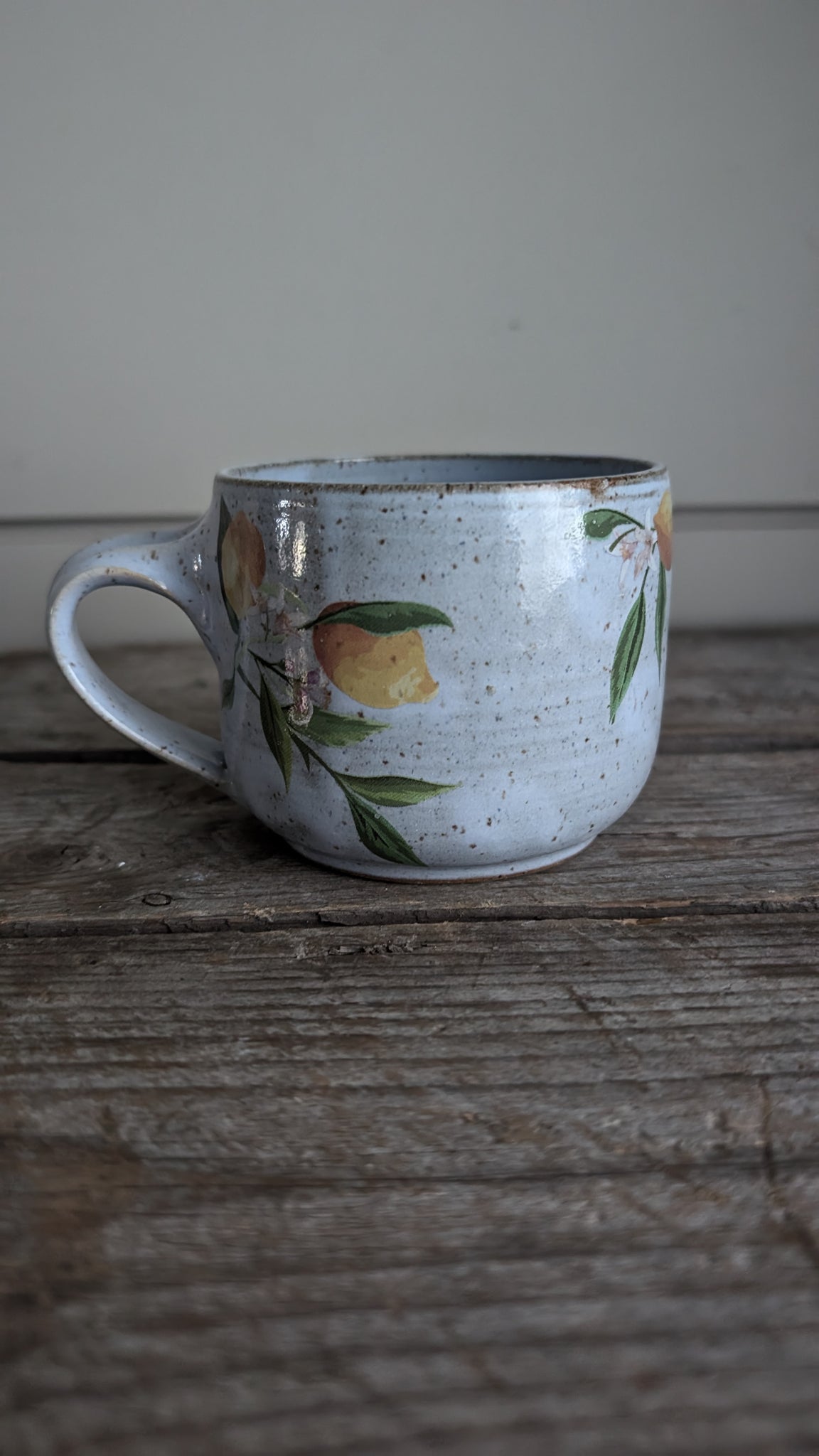 Belle tasse en grès tournée à la main avec des decals de fleurs magnolia appliqués à la main. En raison des décalcomanies, nous suggérons de ne pas mettre cette tasse au lave-vaisselle. Environ 12 oz.